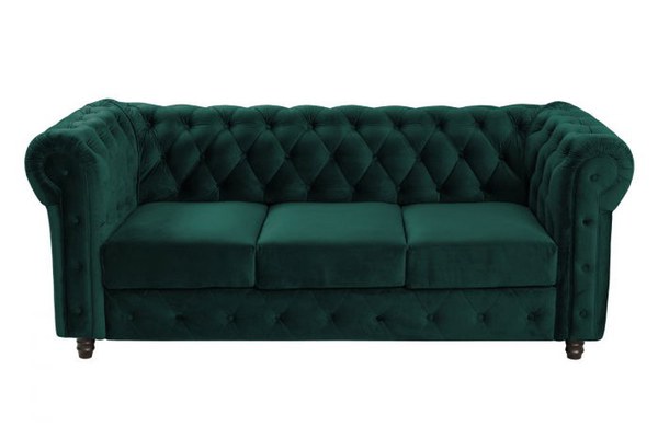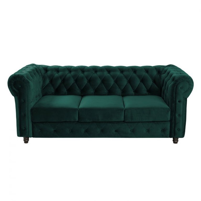 Canapea CHESTERFIELD fixa, 3 locuri, cu arcuri, verde, 205x90x80 cm