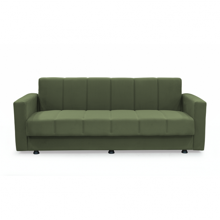 Canapea extensibila MARBELLA ONE, 3 locuri, cu arcuri si lada depozitare, verde, 214x73x80 cm