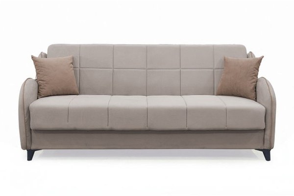 Suprafata de dormit: Lungime: 180 cm Latime: 100 cm Dimensiuni canapea (gabarit): Lungime: 198 cm Adancime totala: 80 cm Inaltime totala: 80 cm Inaltime sezut: 45 cm Numar de locuri recomandat: 3 Materiale: Perne...