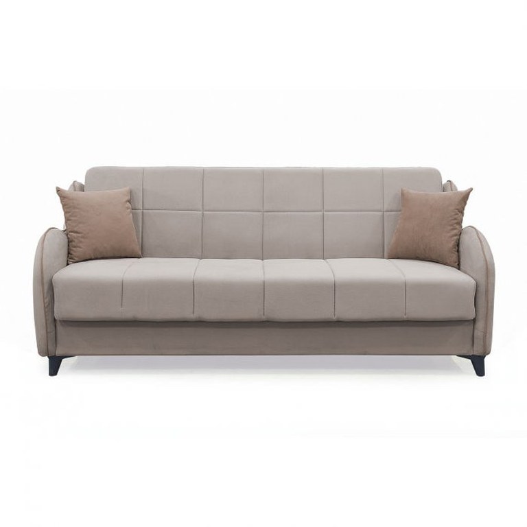 Canapea extensibila WAVE, 3 locuri, cu arcuri si lada pentru depozitare, bej + maro, 198x80x80 cm