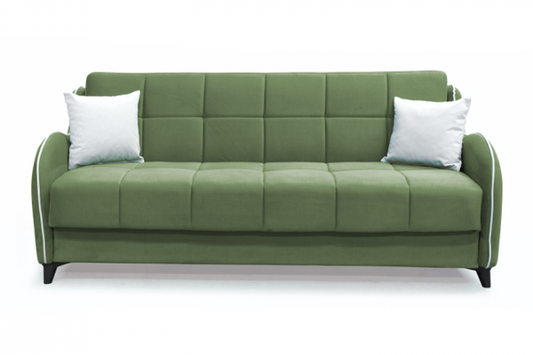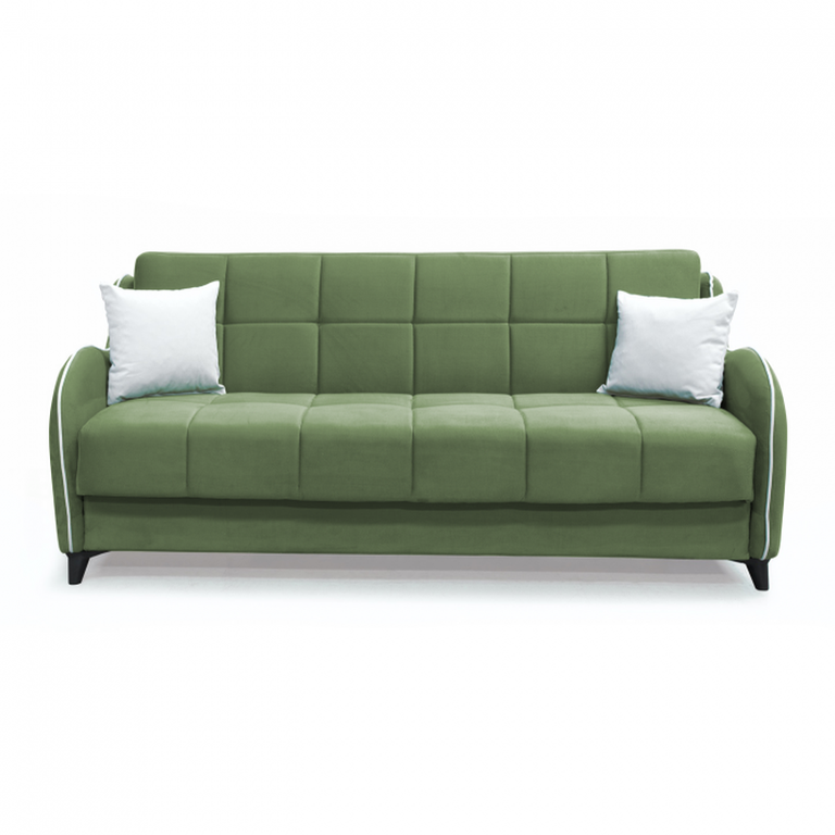 Canapea extensibila WAVE, 3 locuri, cu arcuri si lada pentru depozitare, verde + crem, 198x80x85 cm