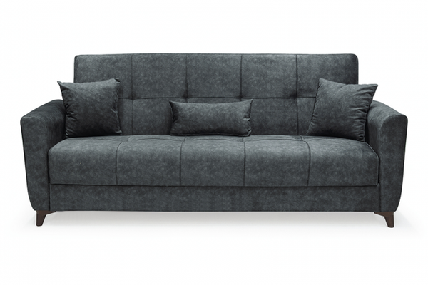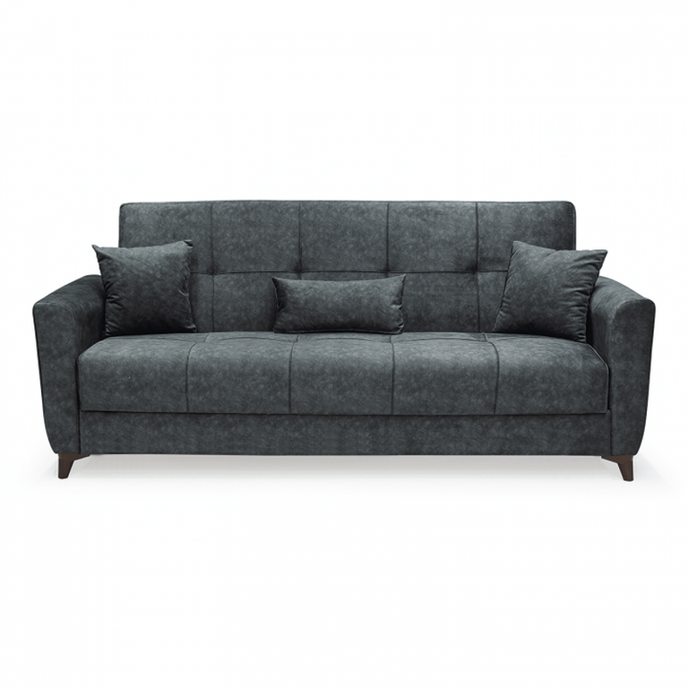 Canapea LEON extensibila, 3 locuri, cu arcuri si lada depozitare, gri, 224x90x95 cm
