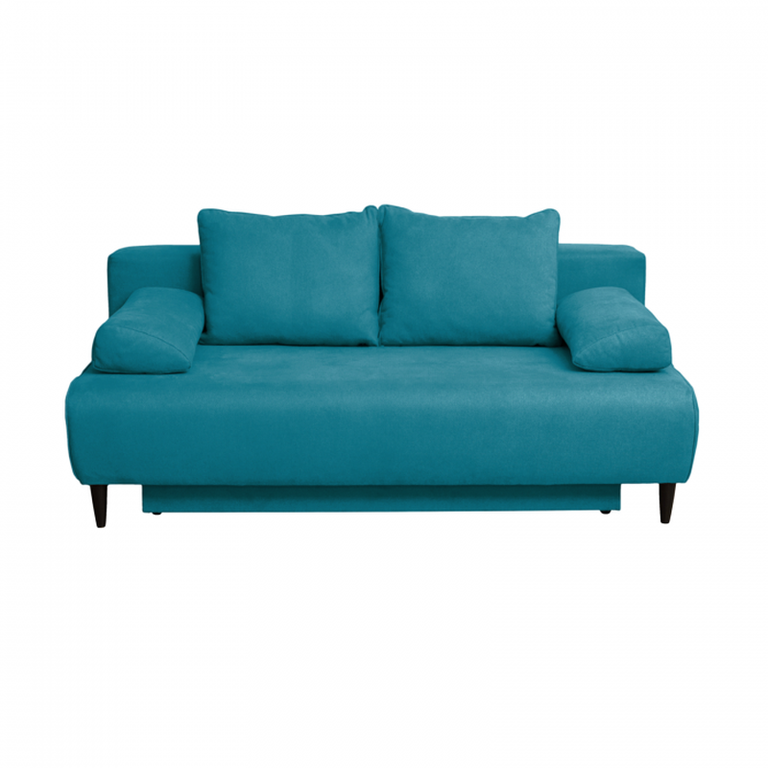 Canapea MARIA extensibila, 3 locuri, cu arcuri si lada depozitare, albastru, 195x97x76 cm