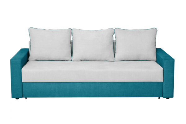 Canapea NICO II 3L extensibila, 3 locuri, cu arcuri si lada depozitare, albastru + gri deschis, 220x85x75 cm