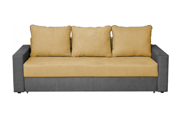 Canapea NICO II 3L extensibila, 3 locuri, cu arcuri si lada depozitare, gri inchis + galben, 220x85x75 cm