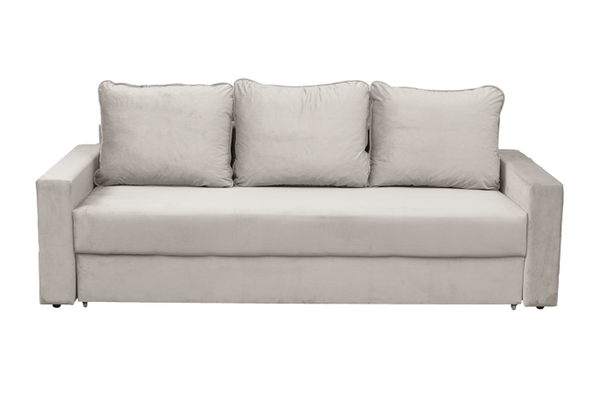 Canapea NICO II extensibila, 3 locuri, cu arcuri si lada depozitare, bej deschis, 220x85x75 cm