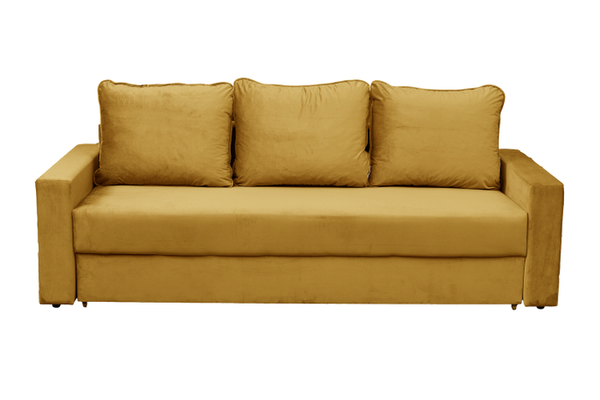 Canapea NICO II extensibila, 3 locuri, cu arcuri si lada depozitare, galben, 220x85x75 cm