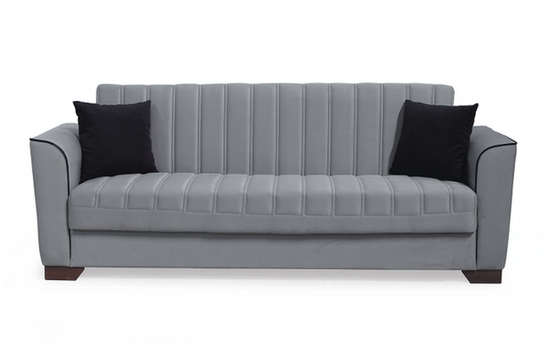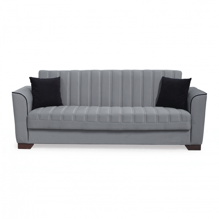 Canapea QUEEN extensibila, 3 locuri, cu arcuri si lada depozitare, gri, 218x70x80 cm