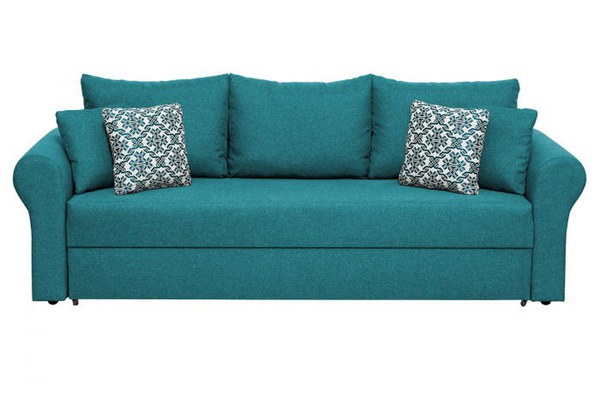 Canapea SARA II extensibila, 3 locuri, cu lada depozitare, turcoaz + print MZT bleu, 235x90x75 cm