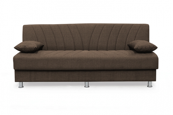 Canapea VALERIA extensibila, 3 locuri, cu arcuri si lada depozitare, maro inchis, 190x82x83 cm