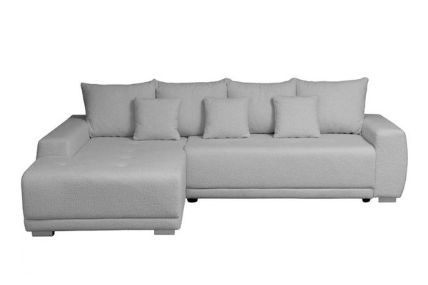 Coltar MARIBO L BUCLE extensibil, cu arcuri si lada depozitare, colt stanga, gri, 282x205x92 cm