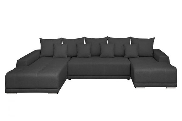 Coltar MARIBO U extensibil, cu arcuri si lada depozitare, colt stanga, gri inchis, 350x203x90 cm