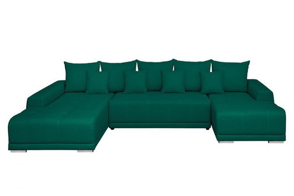 Coltar MARIBO U extensibil, cu arcuri si lada depozitare, colt stanga, verde inchis, 350x203x90 cm
