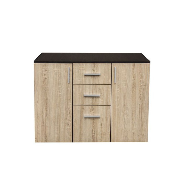 Comoda ALMA, 2 usi, 3 sertare, corp sonoma inchis, fronturi sonoma deschis, 105x40x82 cm