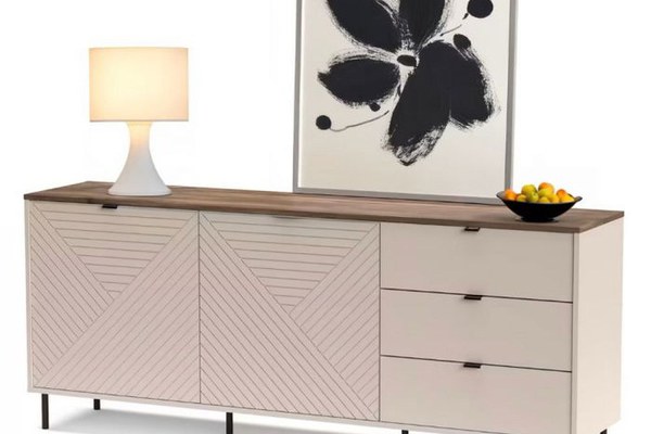 Comoda EVO cu rafturi și trei sertare pe picioare este un mobilier modern care îmbină funcționalitatea cu un design deosebit. Fronturile comodei sunt decorate cu un model geometric în relief, oferindu-i un aspect elegant și contemporan. Realizată...