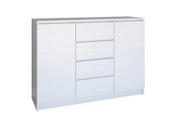 Comoda FLORA, 2 usi, 4 sertare, corp si fronturi alb, 120x40x97 cm