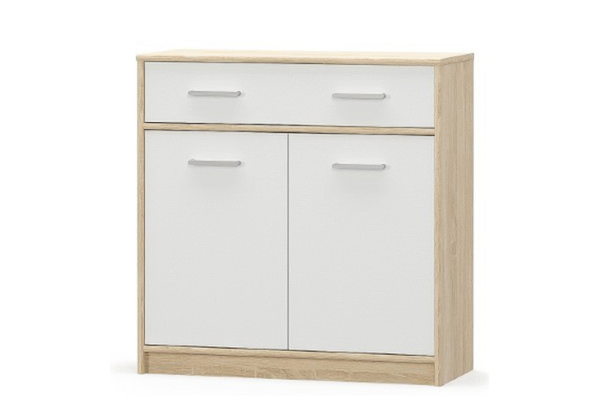 Comoda TIPS, 2 usi, 1 sertar, stejar sonoma + alb, 83,4x34,3x85,5 cm
