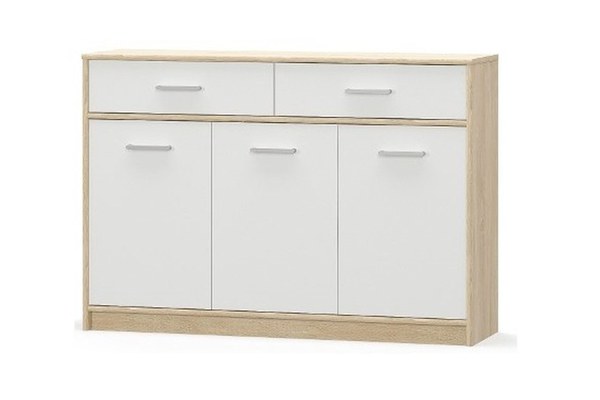 Comoda TIPS, 3 usi, 2 sertare, stejar sonoma + alb, 123,2x34,3x85,5 cm
