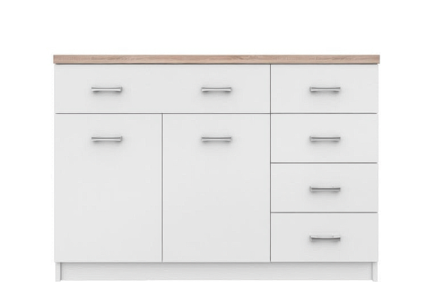 Comoda TOP MIX, 2 usi, 5 sertare, alb, 120x33x85 cm