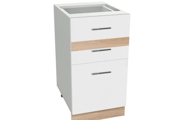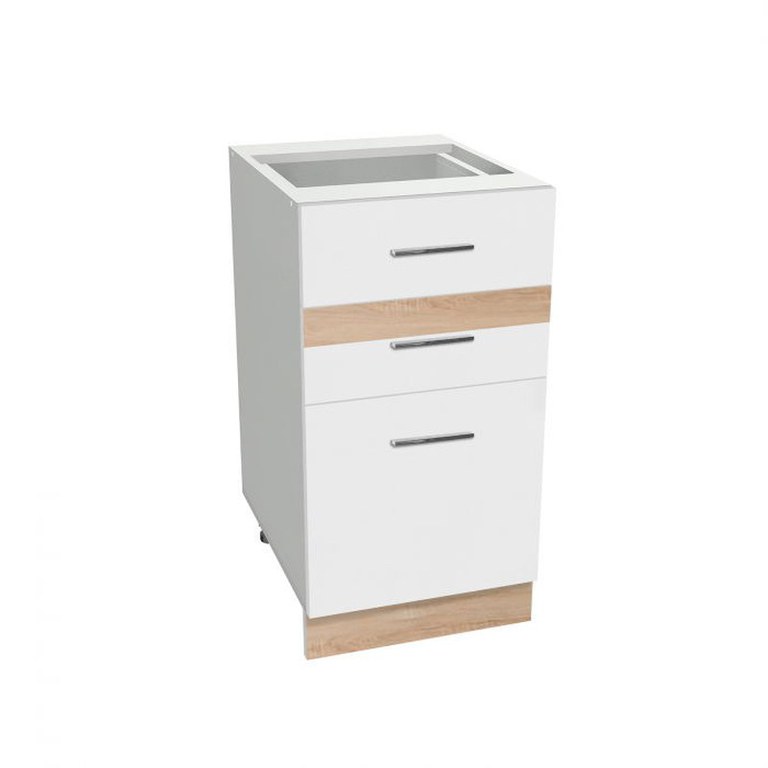 Corp inferior 40 YANA, 3 sertare, corp alb, fronturi alb + sonoma, 40x50x77 cm