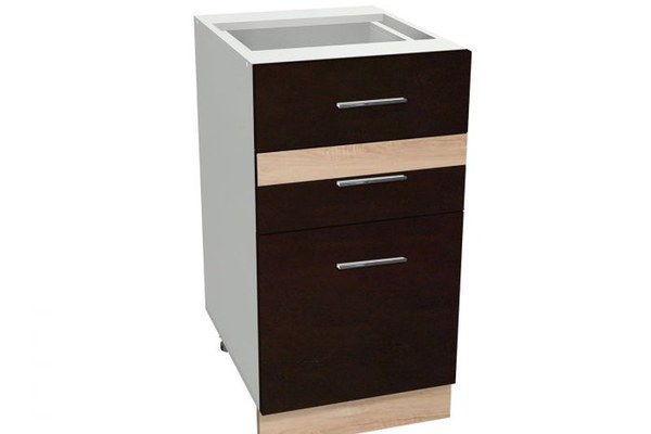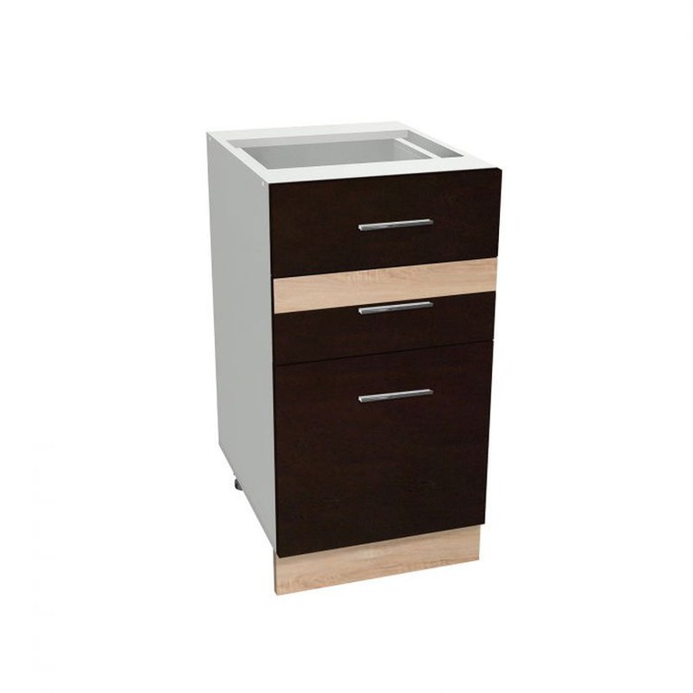 Corp inferior 40 YANA, 3 sertare, corp alb, fronturi sonoma inchis + deschis, 40x50x77 cm