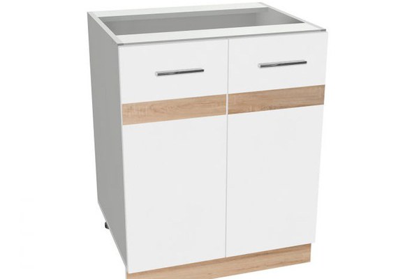 Corp inferior 60 YANA, 2 usi, corp alb, fronturi alb + sonoma, 60x50x77 cm