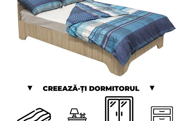 Mod de utilizare Configurator Dormitor ALMA: Pasul 1 - Alege Varianta de Pat dorita dintre urmatoarele dimensiuni: 90x200 cm, 120x200 cm, 140x200 cm sau 160x200 cm Pasul 2 - Adauga Salteaua potrivita pentru dimensiunea patului ales...
