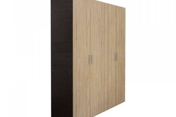 Dulap ALMA L, 4 usi, 6 rafturi, bara de haine, corp sonoma inchis, fronturi sonoma deschis, 160x52x203 cm
