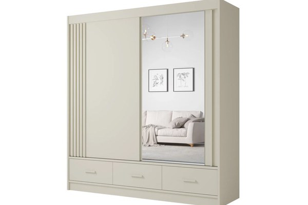 Dulap CANADA CA31-20, usi glisante, 3 sertare, 5 rafturi, bara de haine, oglinda, casmir, 200x60x215 cm