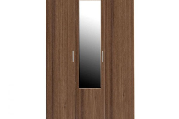 Dulap CORINNE 3 usi, 4 rafturi, bara de haine, oglinda, nuc, cant vanilie, 120x50x188 cm