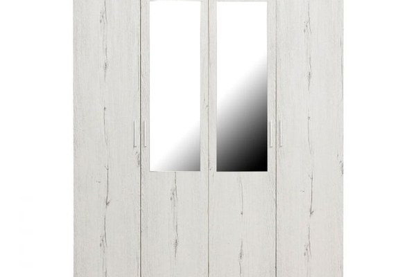 Dulap CORINNE, oglinzi, 4 usi, 4 rafturi, bara de haine, alb Elvetia, 160x50x188 cm