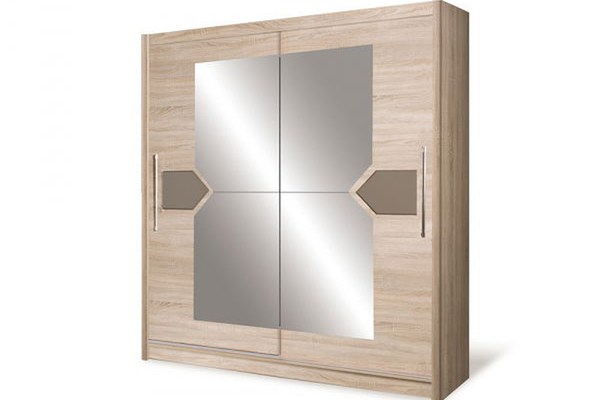 Dulap D04-20, usi glisante, 10 rafturi, bara de haine, oglinda, sonoma, 200x59x215 cm