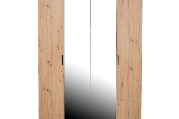 Dulap ECONO, oglinzi, 4 usi, 4 rafturi, bara de haine, stejar artisan, 160x50x206 cm