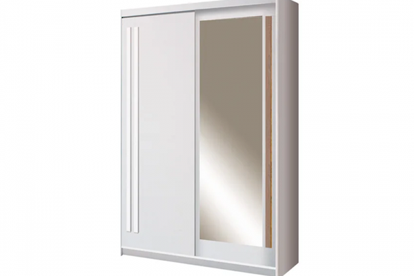 Dulap EF1-150 usi glisante, 6 rafturi, bara de haine, oglinda, alb andersen + artisan, 150x59x215 cm