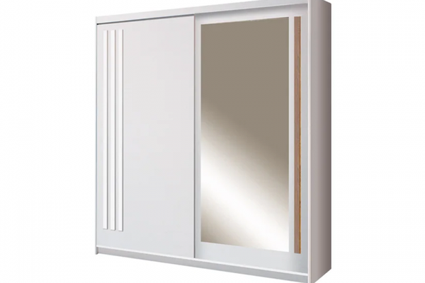 Dulap EF1-200 usi glisante, 6 rafturi, bara de haine, oglinda, alb andersen + artisan, 200x59x215 cm