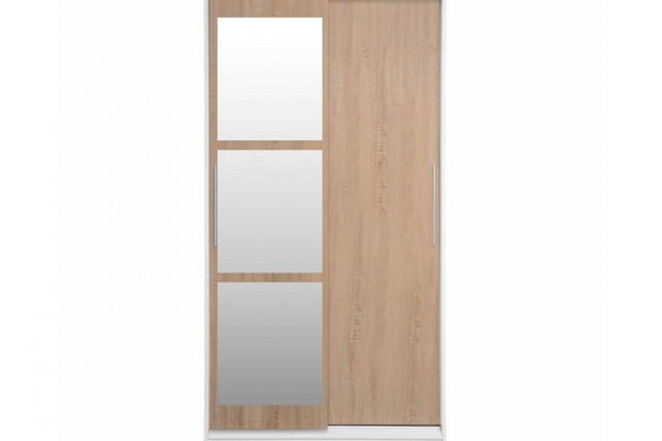 Dulap KOSS 02, cu usi glisante si oglinda, corp alb + usi sonoma, 100x60x200 cm
