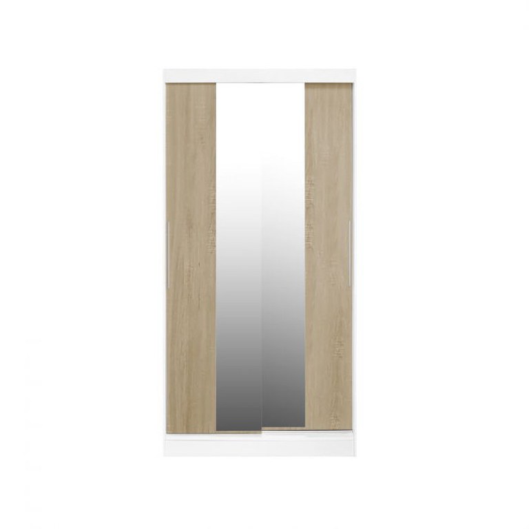 Dulap KOSS 04, cu usi glisante si oglinda, corp alb + usi sonoma, 100x60x200 cm
