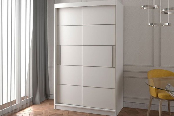 Dulap NEOMI 06, usi glisante, 6 rafturi, bara de haine, alb, 120x61x200 cm