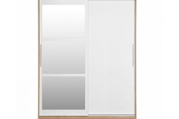 Dulap RODOS 02, cu usi glisante si oglinda, corp sonoma + usi alb, 150x60x200 cm