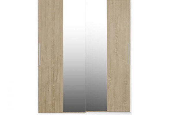 Dulap RODOS 04, usi glisante si oglinda, corp alb + usi sonoma, 150x60x200 cm