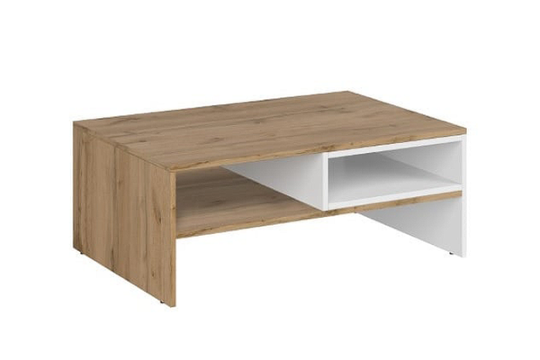 Masuta de cafea VIGO, cu raft, alb + stejar wotan, 90x60x35,5 cm