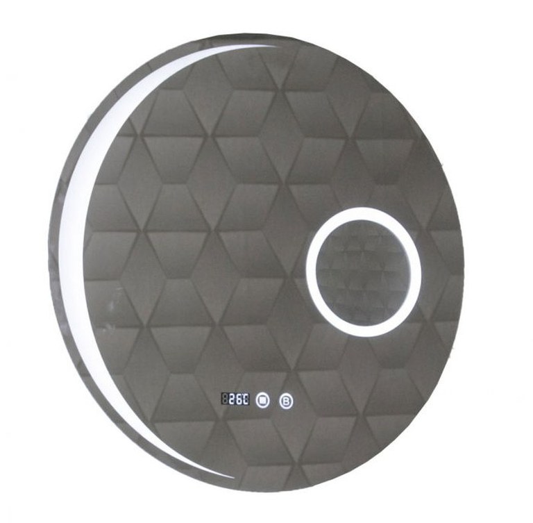 Oglinda cu iluminare LED, functie dezaburire, ceas, termometru si lupa, MD5, diametru 80 cm
