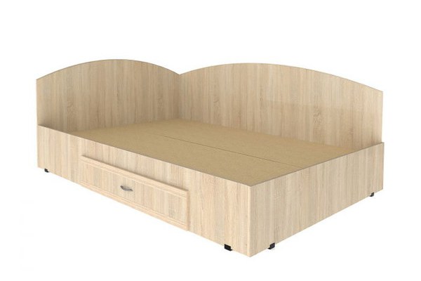 Pat de colt, 120x200 cm, sertar lateral pe role, sonoma