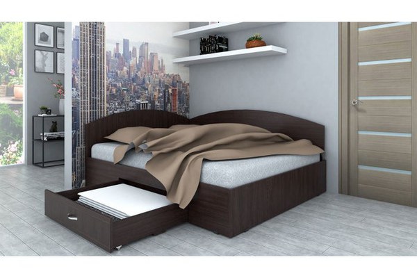 Pat de colt, 140x200 cm, sertar lateral pe role, wenge