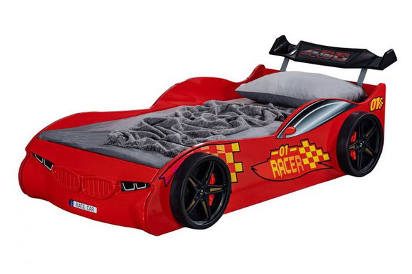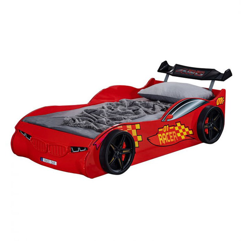 Pat pentru copii masina ECO RACE, rosu, 90x190 cm