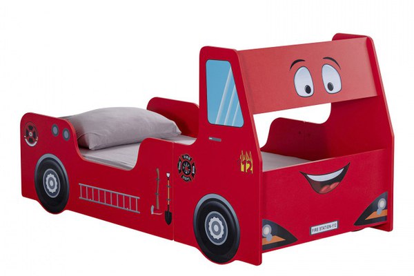 Pat pentru copii masina FIRE TRUCK, rosu, 90x190 cm