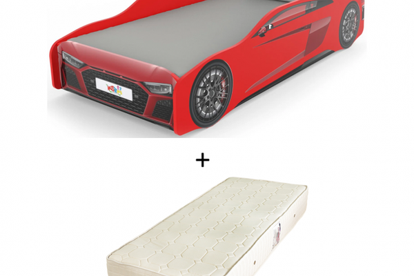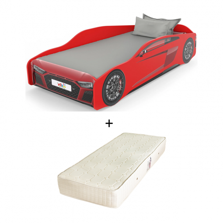 Pat pentru copii masina ULTRA ECO, rosu + Saltea Superortopedica cu arcuri, 90x190 cm