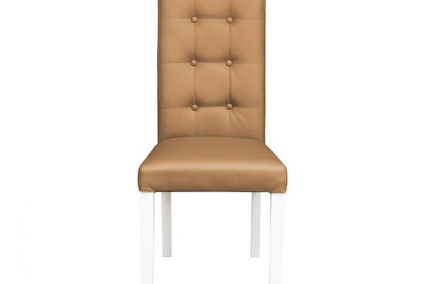 Scaun living TEO LUX, picioare lemn alb, piele ecologica bej inchis, 46x60x98 cm