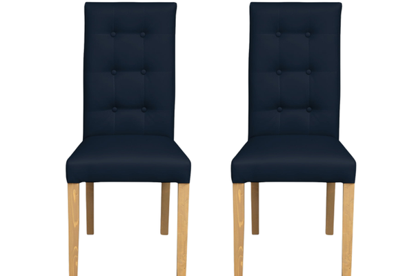 Set 2 scaune living TEO LUX, picioare lemn natur, piele ecologica albastru, 46x60x98 cm