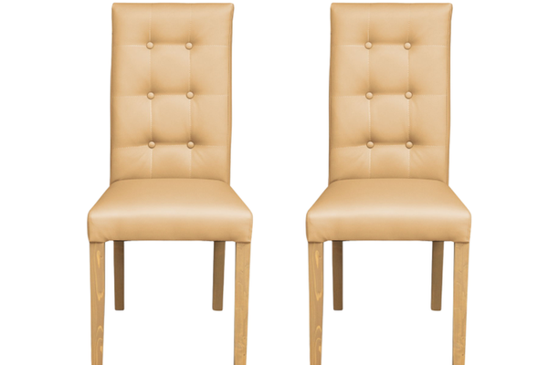 Set 2 scaune living TEO LUX, picioare lemn natur, piele ecologica bej, 46x60x98 cm